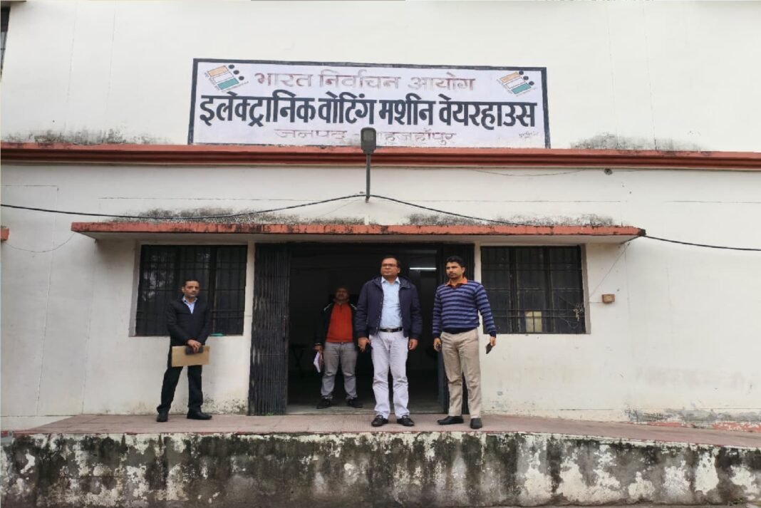 जिला निर्वाचन अधिकारी धर्मेंद्र प्रताप सिंह ने उप जिला निर्वाचन अधिकारी रजनीश कुमार मिश्र के साथ कंपाउंड स्थित इलेक्ट्रॉनिक वोटिंग मशीन वेयरहाउस का मासिक निरीक्षण किया।