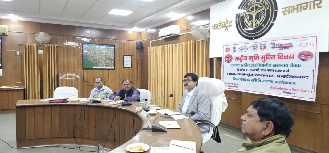फर्रुखाबाद: जिलाधिकारी (District Magistrate) आशुतोष कुमार द्विवेदी की अध्यक्षता में कलेक्ट्रेट सभागार, फतेहगढ़ में राष्ट्रीय कृमि मुक्ति दिवस (National Deworming Day) के सफल आयोजन को लेकर जनपदस्तरीय अंतर्विभागीय समन्वय बैठक आयोजित की गई। बैठक में अभियान की तैयारियों की विस्तृत समीक्षा की गई और संबंधित विभागों को आवश्यक दिशा-निर्देश दिए गए।