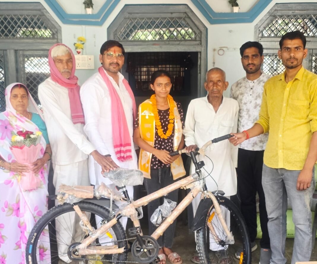 जिले की टॉपर अंशिका यादव को साइकिल भेंट कर किया सम्मानित, चौथा स्थान पाकर प्रदेश में बढ़ाया मान