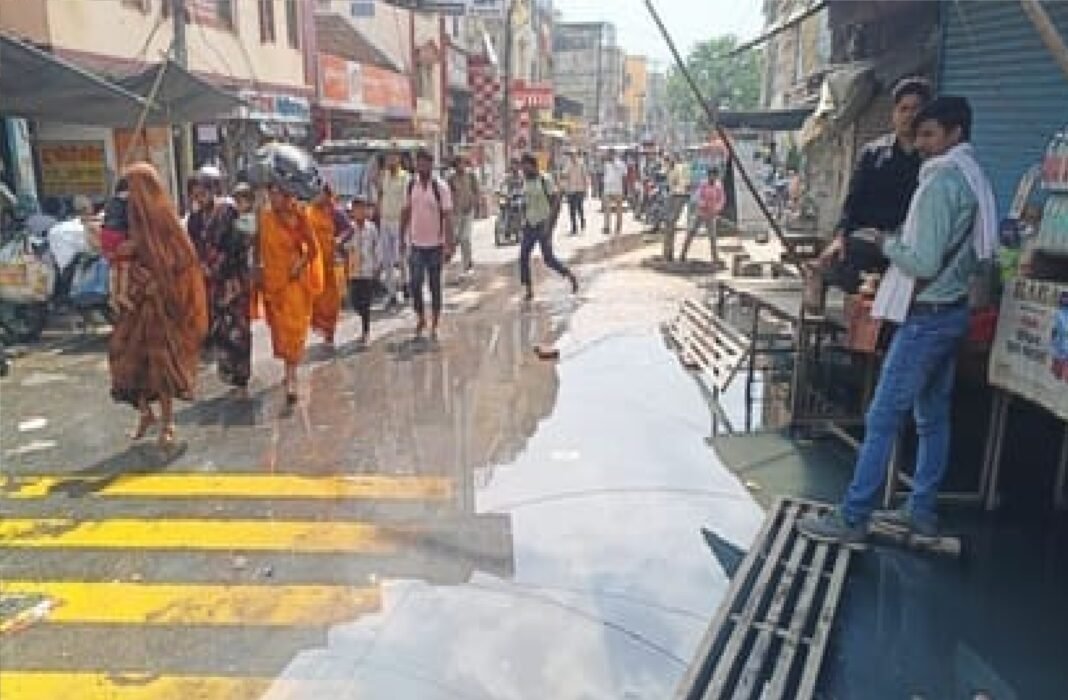 नाला निर्माण बना मुसीबत, गांधी मूर्ति के पास जलभराव से जनजीवन प्रभावित