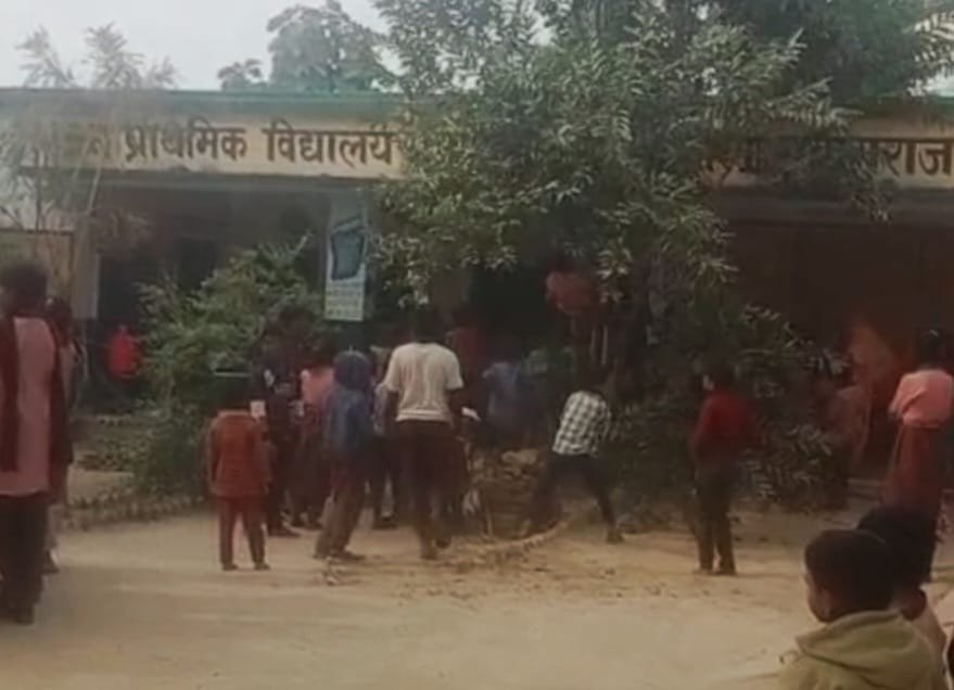 प्रयागराज के संविलियन विद्यालय में बच्चों से पेड़ तुड़वाने का आरोप