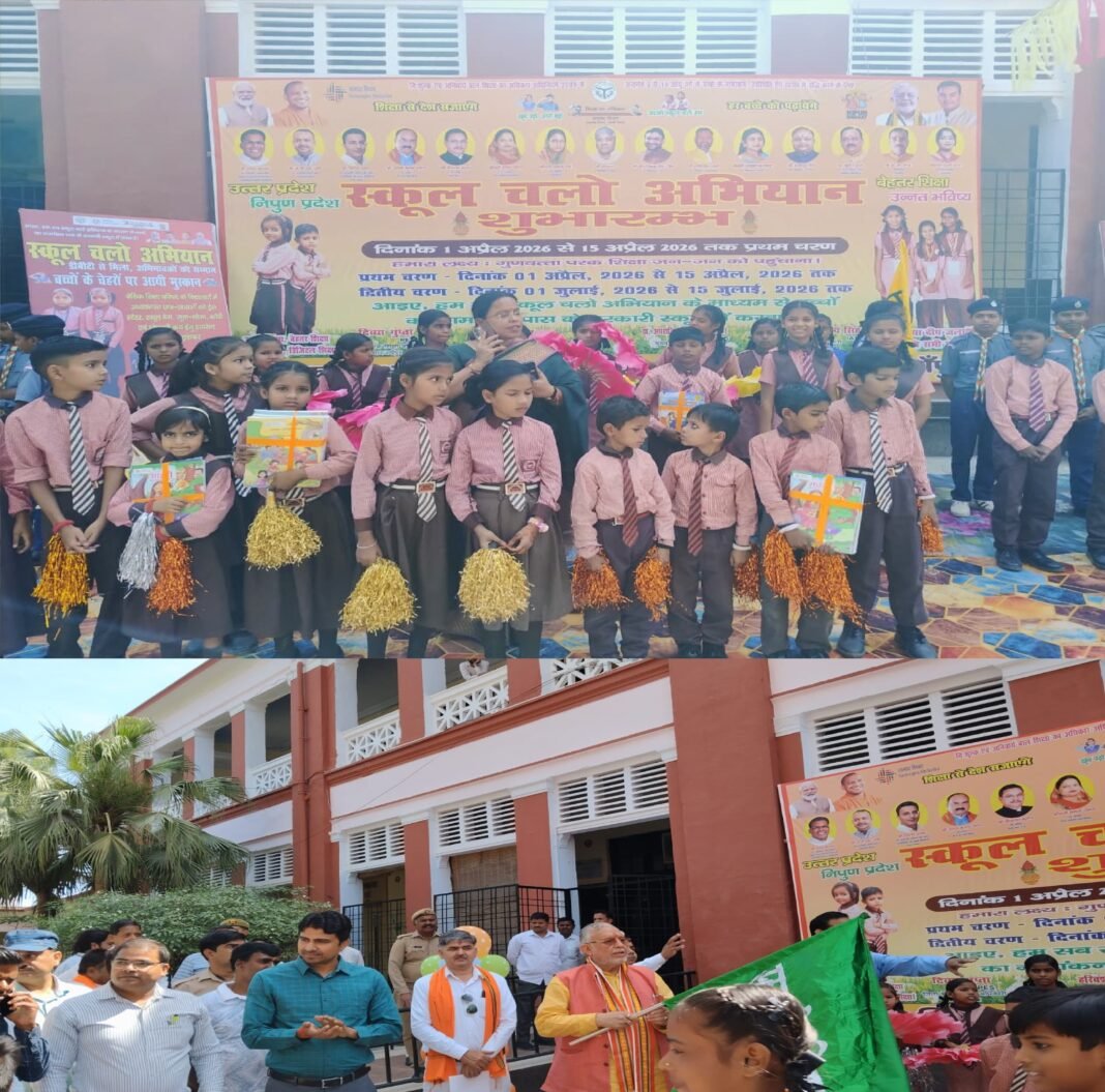 शाहजहांपुर। दिनांक 01.04.2026/ नवीन शैक्षिक सत्र के प्रथम दिवस ‘स्कूल चलो अभियान’ का शुभारंभ उत्तर प्रदेश सरकार के वित्त एवं संसदीय कार्य मंत्री सुरेश कुमार खन्ना ने कलेक्ट्रेट से स्कूल चलो अभियान एलईडी वैन को हरी झंडी दिखाकर रवाना किया। वैन के माध्यम से गांव-गांव तक यह संदेश पहुंचाया जाएगा कि हर बच्चा विद्यालय से जुड़े और शिक्षा की मुख्यधारा में शामिल हो। बच्चों का विद्यालय में रोली-तिलक लगाकर, मिष्ठान खिलाकर और पुष्प वर्षा कर आत्मीय स्वागत किया जाये , जिससे उनका मनोबल बढ़ेगा और विद्यालय के प्रति अपनापन झलकता है ।