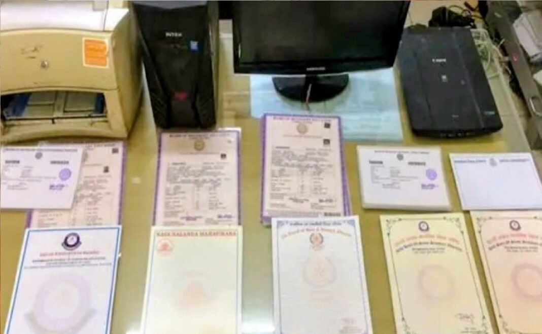 लखनऊ: राजधानी लखनऊ में फर्जी शैक्षिक दस्तावेज तैयार करने वाले एक बड़े गिरोह का खुलासा हुआ है। पुलिस ने कार्रवाई करते हुए PhD डिग्रीधारी व्यक्ति द्वारा संचालित फर्जी डिग्री–मार्कशीट रैकेट (Fake degree-marksheet gang) का पर्दाफाश किया है। यह गिरोह देशभर के नामी विश्वविद्यालयों की नकली डिग्रियां और मार्कशीट तैयार कर ऊंचे दामों पर बेच रहा था।