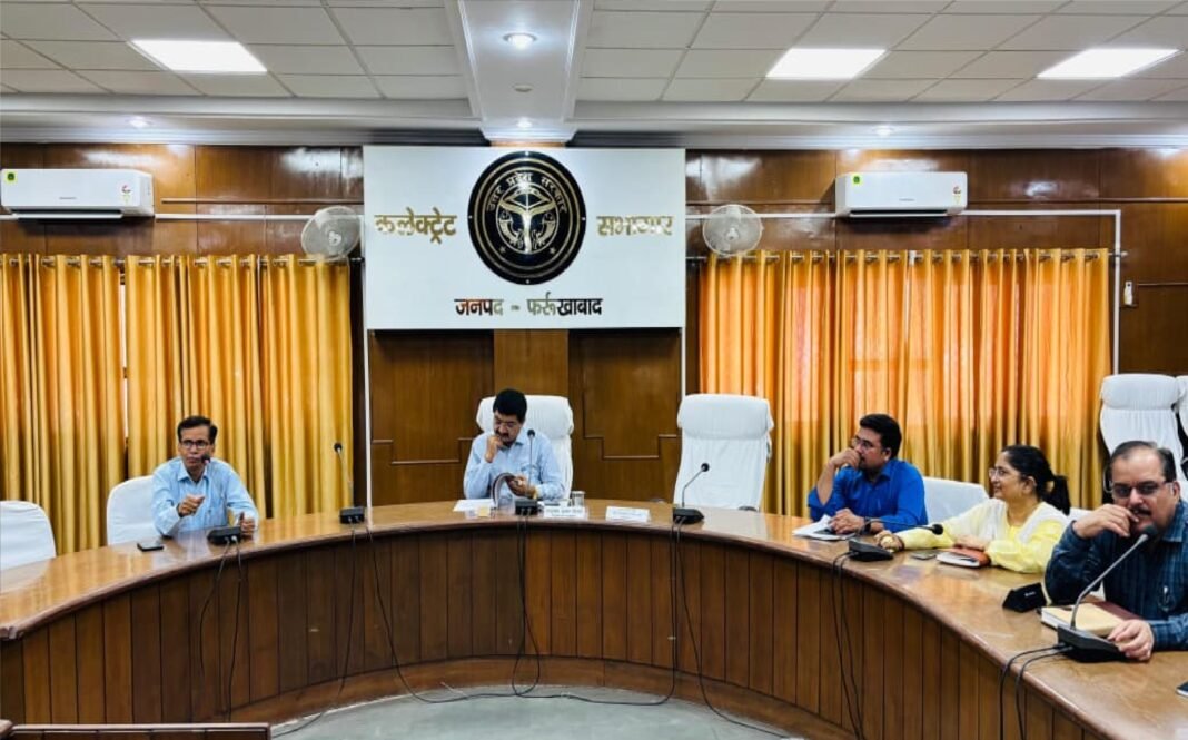 फर्रुखाबाद। जिलाधिकारी आशुतोष कुमार द्विवेदी की अध्यक्षता में कलेक्ट्रेट सभागार में फार्मर रजिस्ट्री को लेकर एक महत्वपूर्ण बैठक आयोजित की गई, जिसमें जनपद में चल रही गेहूं खरीद व्यवस्था को और अधिक पारदर्शी एवं सुचारु बनाने पर विशेष जोर दिया गया। बैठक में अपर जिलाधिकारी (वि०/रा०) अरुण कुमार सिंह, उप कृषि निदेशक अरविन्द मोहन मिश्र, सहायक निबंधक सहकारी समितियां अजय पालीवाल, वरिष्ठ विपणन अधिकारी रोली सिंह सहित विभिन्न विभागों के अधिकारी एवं कर्मचारी उपस्थित रहे।