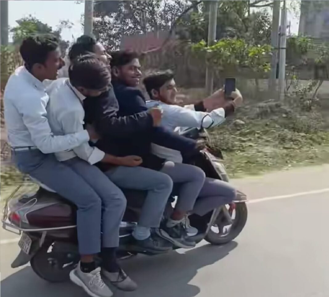 स्कूटी पर 5 नाबालिग छात्र, मौत से खेलती सेल्फी—सड़क पर स्टंट, हादसे को खुला न्योता