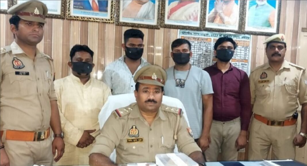 प्रभारी निरीक्षक विनोद कुमार शुक्ला के नेतृत्व में कस्बा चौकी इंचार्ज अंकुर भाटी की टीम ने टेढ़ीकोन चौराहे से आरोपियों को दबोचा। गिरफ्तार अभियुक्तों में पुरुषोत्तम सक्सेना उर्फ मल्लू (उरई, जालौन), दीपू परिहार, प्रदीप कुमार (अकोड़ी, जालौन) और कुलदीप गौतम (अकनीवा, जालौन) शामिल हैं।