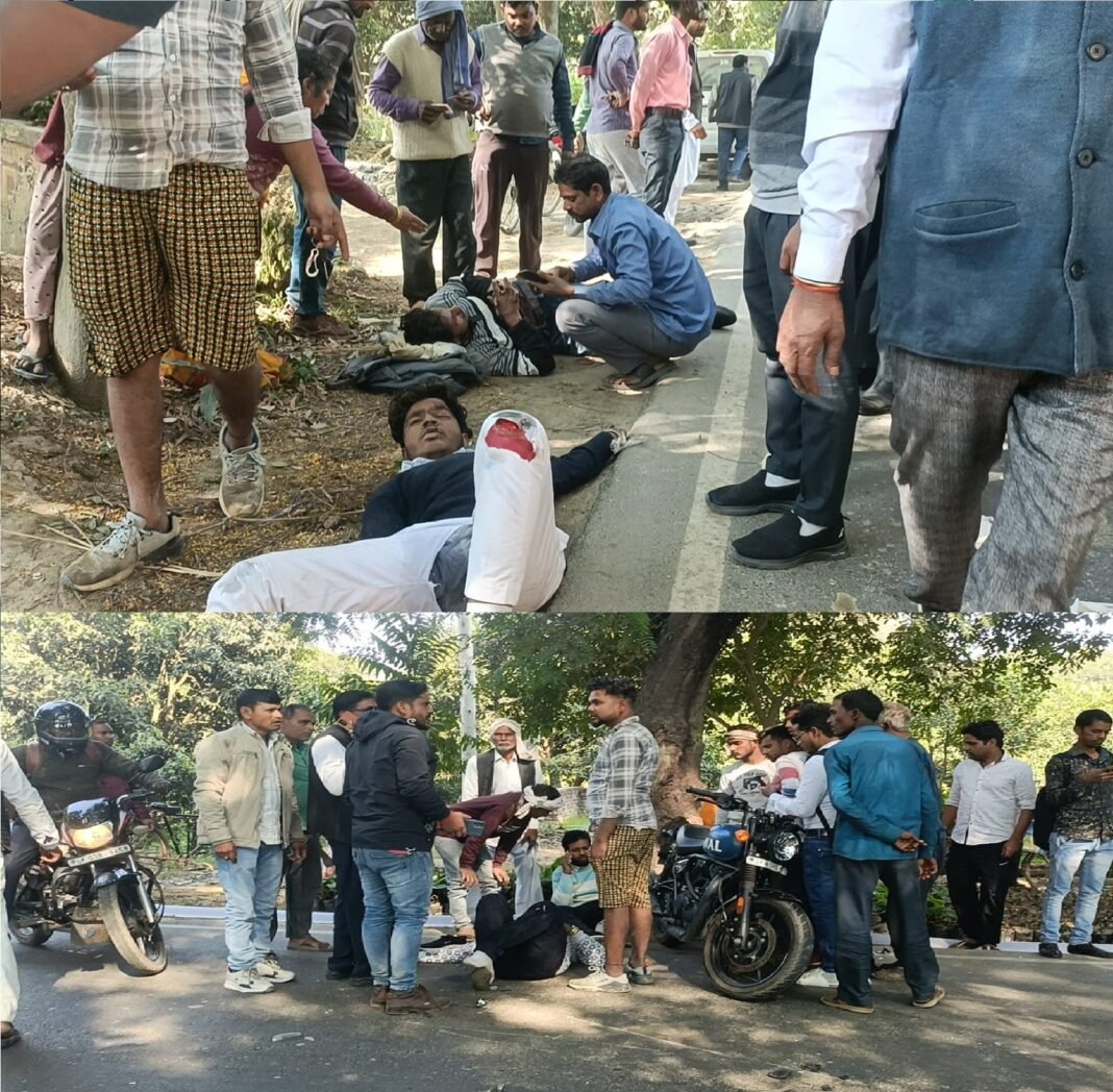 कायमगंज: कोतवाली कायमगंज (Kotwali Kayamganj) क्षेत्र के अंतर्गत बरझाला कायमगंज रोड़ पर बुलेट व स्कूटी सवार युवकों की आपने सामने भिड़ंत हो गई जिसके चलते दोनों बाईकों के परखच्चे उड़ गए। जानकारी के अनुसार गंभीर रूप से घायल (seriously injured) युवकों की पहचान (हंटर)बुलेट सवार रवि पुत्र अशोक उम्र 28 वर्ष मोहल्ला झील कोतवाली कायमगंज व दूसरा साथी शिवम् पुत्र श्याम बिहारी उम्र 20 वर्ष निवासी मोहम्दाबाद व स्कूटी सवार युवक गोलू पुत्र संजीव यादव उम्र 18 निवासी जे एन वी रोड फतेहगढ़ व विकास पुत्र अरबेश उम्र 20 वर्ष निवासी मनोहर नगर पिलखना के रूप में हुए है।