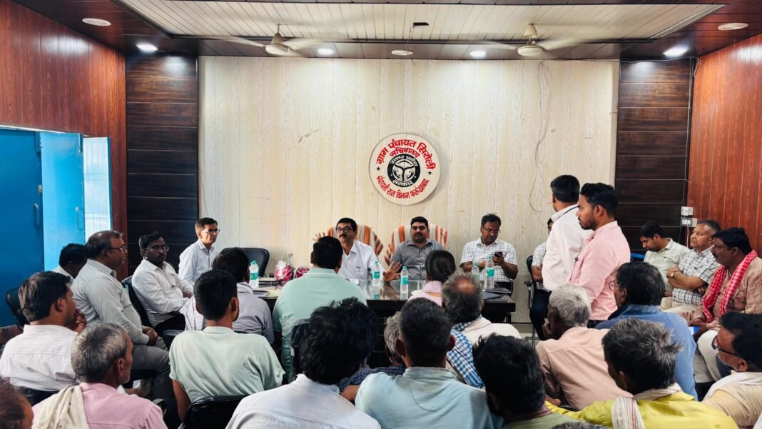 फर्रुखाबाद। जनपद के ग्राम पंचायत सिरौली में किसानों के हितों से जुड़ी एक महत्वपूर्ण बैठक का आयोजन किया गया, जिसमें जिलाधिकारी आशुतोष कुमार द्विवेदी ने अध्यक्षता करते हुए फार्मर रजिस्ट्री आईडी और भूमि अधिग्रहण से संबंधित मुद्दों पर विस्तार से चर्चा की। बैठक में अपर जिलाधिकारी, उप जिलाधिकारी, तहसीलदार, उप कृषि निदेशक, क्षेत्रीय कर्मचारी तथा बड़ी संख्या में ग्रामवासी मौजूद रहे।