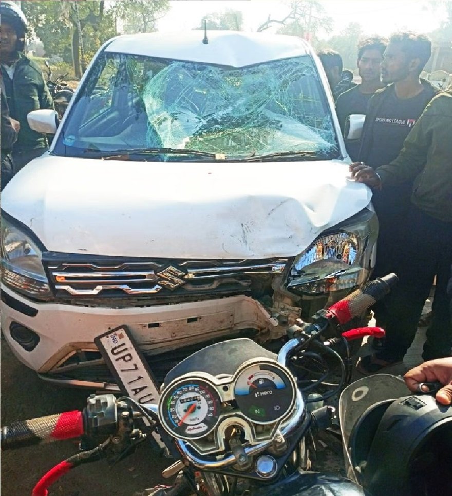 असोथर। गाजीपुर–विजयीपुर मार्ग पर शनिवार सुबह झाल तिराहे के पास एक दर्दनाक सड़क हादसा हो गया। पंक्चर की दुकान के बाहर खड़ी कार में तेज रफ्तार बाइक सवार जा टकराए, जिससे बाइक पर सवार तीन युवक घायल हो गए। घटना के बाद मौके पर अफरा-तफरी मच गई।