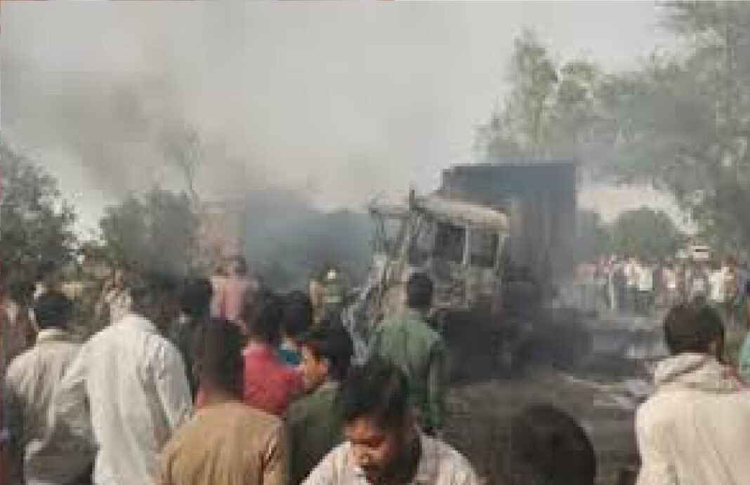 फिरोजाबाद: यूपी के फिरोजाबाद (Firozabad) एटा-टुंडला मार्ग (Etah-Tundla route) पर रिजावली पुलिस थाना क्षेत्र में बीते शुक्रवार दोपहर विपरीत दिशाओं से तेज गति से आ रहे दो टैंकरों की आमने-सामने टक्कर हो गई, जिसमें दोनों टैंकरों के चालकों की मौत हो गई। खबरों के अनुसार, एक टैंकर एटा से टुंडला की ओर और दूसरा टुंडला से एटा की ओर जा रहा था, तभी यह टक्कर हुई।