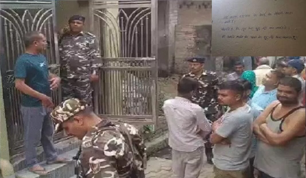 बच्चों की हत्या करने के बाद, उसने कथित तौर पर छत पर लगे हुक से खुद को लटका लिया। मरने से पहले, अमरेश ने कमरे की दीवार पर एक सुसाइड नोट लिखा, जिसमें उसने अपनी पत्नी और एक अन्य व्यक्ति को इस त्रासदी के लिए जिम्मेदार ठहराया। नोट में, उसने एसएसबी की 66वीं बटालियन में तैनात चौथी श्रेणी की कर्मचारी, अपनी पत्नी वंदना भारती (35) पर विवाहेतर संबंध रखने का आरोप लगाया।