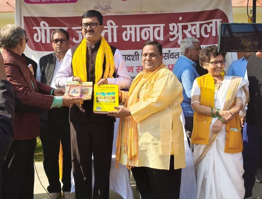 25 किलोमीटर लंबी मानव श्रृंखला बनी , शिक्षण संस्थानों में गीता का संदेश।