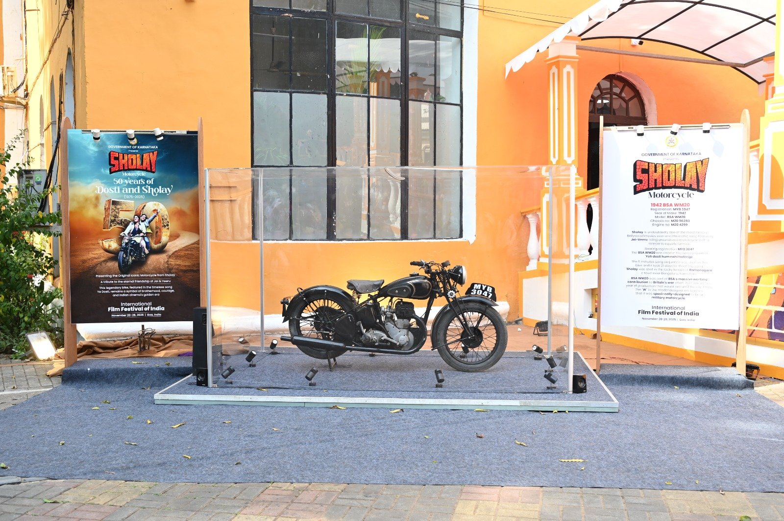 ‘यह दोस्ती हम नहीं तोड़ेंगे’ गाने में जय (अमिताभ बच्चन) और वीरू (धर्मेंद्र) द्वारा इस्तेमाल की गई 1942 मॉडल की BSA WM20 मोटरसाइकिल को एक विशेष ग्लास केस में रखा गया है। यह प्रदर्शनी ‘दोस्ती और शोले के 50 साल (1975-2025)’ के विशेष उत्सव का हिस्सा है।