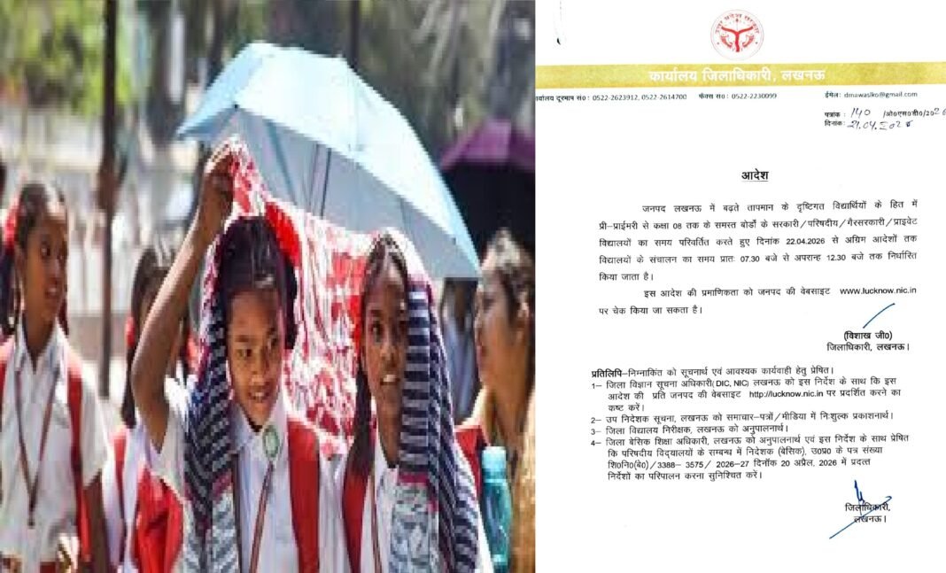 जनपद लखनऊ में तापमान लगातार बढ़ रहा है, जिससे बच्चों के स्वास्थ्य पर असर पड़ने की आशंका जताई जा रही है। इसी को ध्यान में रखते हुए जिलाधिकारी कार्यालय ने आदेश जारी किया है कि सभी बोर्ड के सरकारी, परिषदीय और निजी स्कूलों का समय बदला जाए। ये आदेश 22 अप्रैल से लागू होगा और अगले निर्देश तक प्रभावी रहेगा।