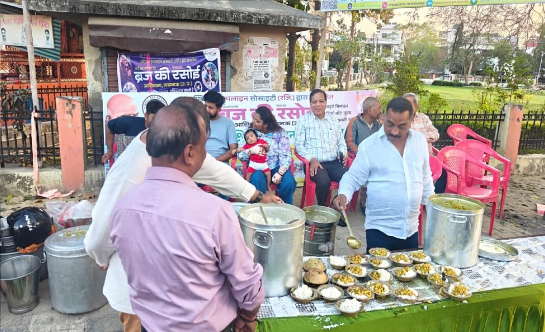 लखनऊ, आशियाना। बाबा नीम करौली जी की सेवा-प्रेरणा से संचालित इण्डियन हेल्पलाइन सोसाइटी (पंजी.) के सेवा उपक्रम बृज की रसोई द्वारा रविवार को आशियाना क्षेत्र में निःशुल्क भोजन वितरण कार्यक्रम शालीनता एवं सामाजिक मर्यादा के साथ संपन्न हुआ।