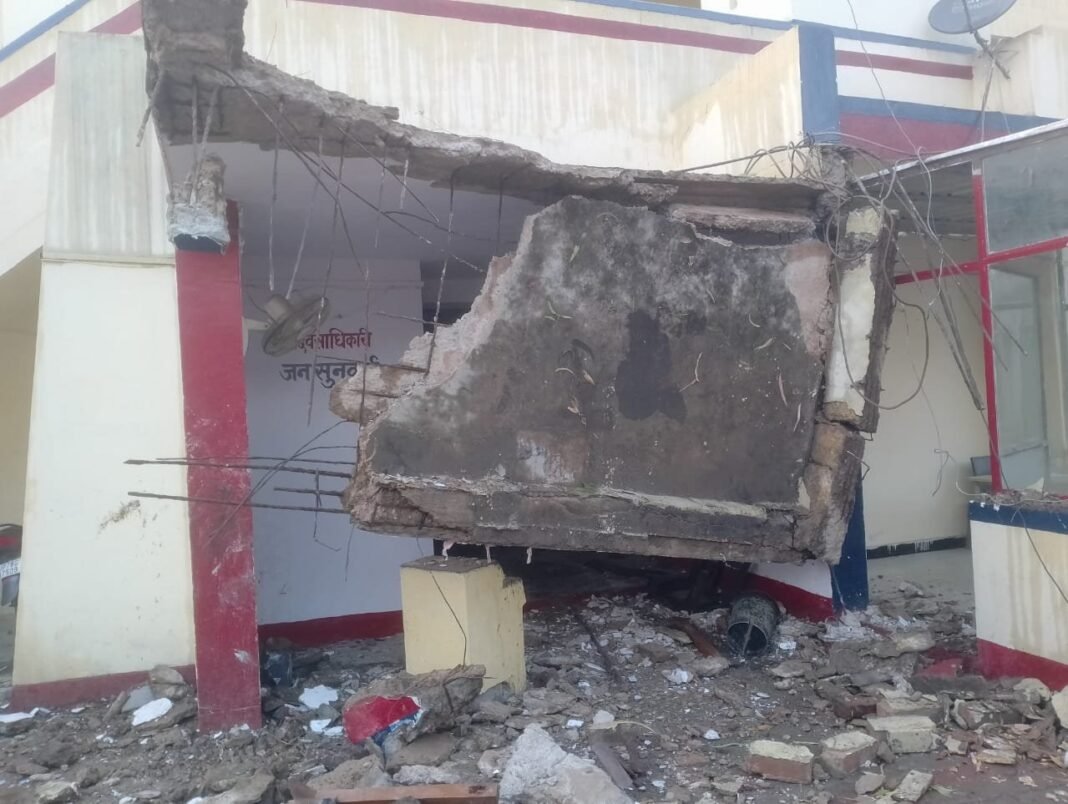 थाने के जनसुनवाई भवन का छज्जा गिरा, पुलिसकर्मी समेत बुजुर्ग दंपत्ति घायल