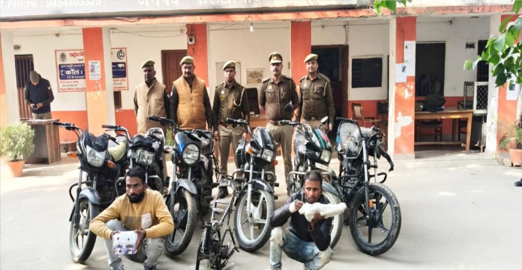 कायमगंज/फर्रुखाबाद: बाईक चोरी (stolen bikes) करने वाले गिरोह के सदस्यों को पकड़ कर पुलिस को बड़ी सफलता हासिल हुई है। पुलिस अधीक्षक (superintendent of police) आरती सिंह के दिशा-निर्देशन और क्षेत्राधिकारी राजेश कुमार द्विवेदी के नेतृत्व में अपराधियों की धरपकड़ के लिए चलाए जा रहे अभियान के तहत कोतवाली पुलिस ने बड़ी कार्रवाई करते हुए दो वाहन चोरों को गिरफ्तार किया है। प्रभारी निरीक्षक मदन मोहन चतुर्वेदी, वरिष्ठ उपनिरीक्षक सुरजीत सिंह, उपनिरीक्षक सोमवीर सिंह समेत पुलिस टीम को सूचना मिली कि बाइक चोरी की फिराक में दो युवक क्षेत्र में घूम रहे हैं।