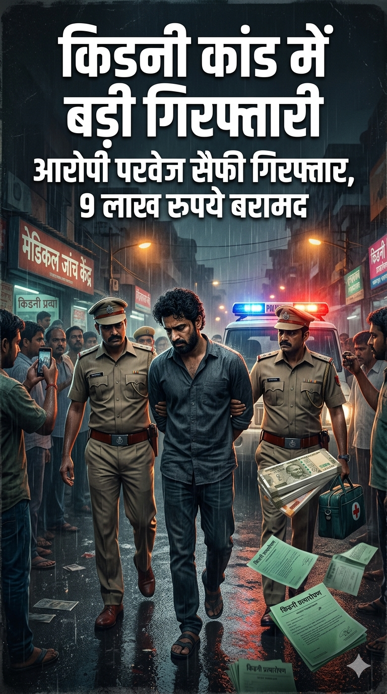 किडनी कांड में बड़ी गिरफ्तारी: आरोपी परवेज सैफी गिरफ्तार, 9 लाख रुपये बरामद