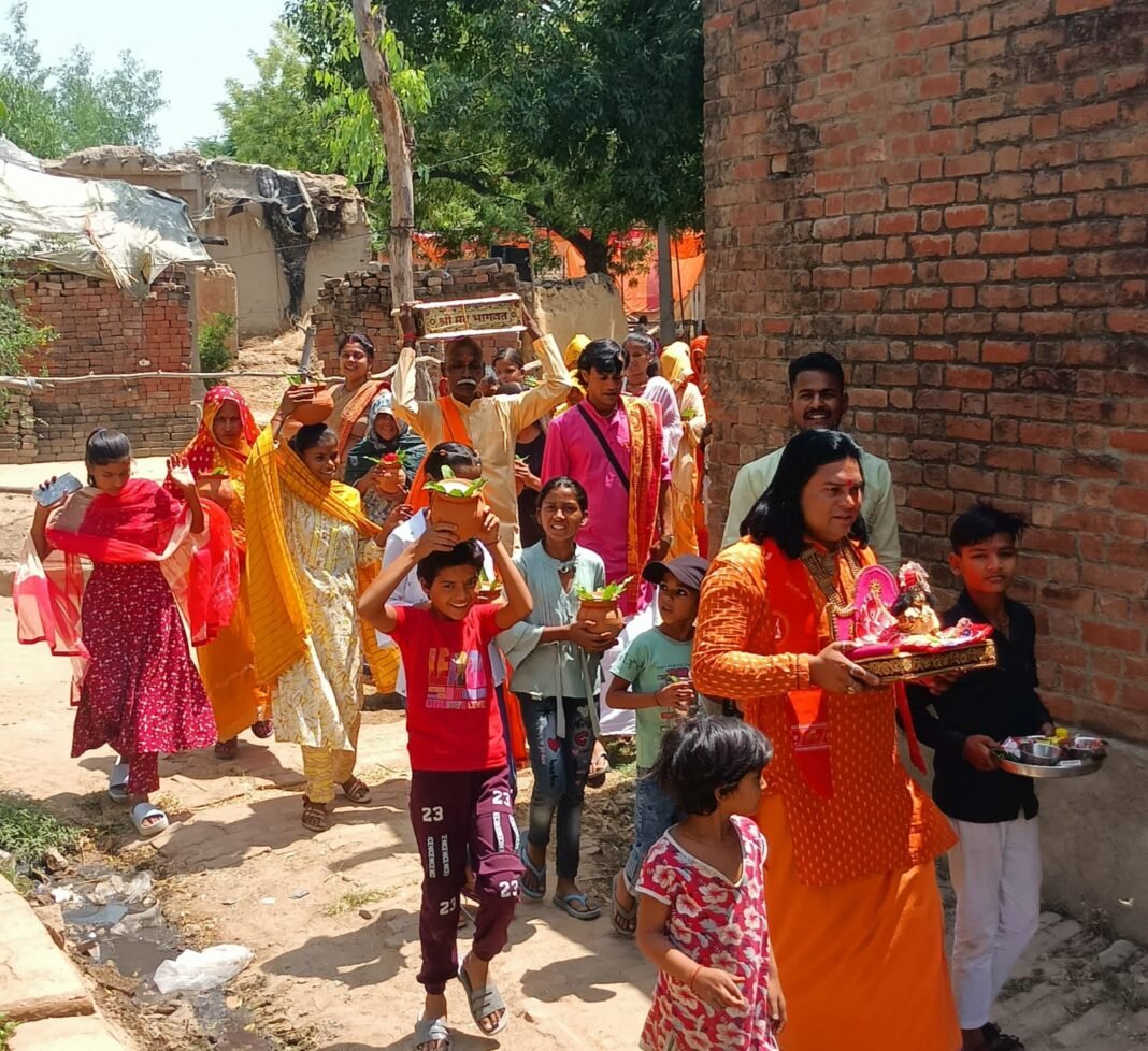 कार्यक्रम की शुरुआत प्रातः 08 बजे भव्य कलश यात्रा के साथ हुई। श्रद्धालु माताओं-बहनों ने सिर पर कलश धारण कर प्राचीन शिव मंदिर स्थित कथा पांडाल से गर्रा नदी तक यात्रा निकाली। वहां विधिवत पूजन-अर्चन कर पवित्र जल से घट भरकर पुनः कथा पांडाल में स्थापित किए गए। इस दिव्य आयोजन ने पूरे क्षेत्र को धार्मिक आस्था और सांस्कृतिक एकता के रंग में रंग दिया।