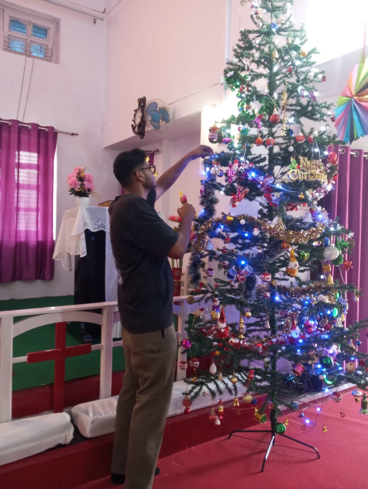 मसीह समाज के लोगों के घरों पर कैरल सिंगिंग हो रहा है। जैसे-जैसे बड़ा दिन यानी क्रिसमस डे नजदीक आ रहा है – मसीही समाज के लोगों में उत्साहं – बढ़ता जा रहा है। सीएनआई चर्च बढ़पुर, घुमना स्थित सिटी चर्च, बढ़पुर चर्च में क्रिसमस ट्री सजाता फतेहगढ़ स्थित रखा चर्च, कैंट स्थित आल सोल्स चर्च में रंग रोगन का काम पूरा हो चुका है। अब सजावट का काम चल रहा है। ट्री सजाए जा रहे हैं तो कहीं झालरों से सजावट की जा रही है। बाजार में दुकानों पर क्रिसमस ट्री के साथ ही अन्य सजावट का सामान बिक रहा है। घरों में भी त्योहार की जोरदार तैयारियां चल रही हैं। घरों में साज-सज्जा साथ केक आदि पकवान बनाने की तैयारी चल रही है। बताया कि चर्च में सजावट का काम कराया जा रहा है। पादरी मनोज कुमार के नेतृत्व में घरों में जाकर कैरल सिंगिंग कर लोगों को बधाई व शुभकामनाएं दे रहे हैं।