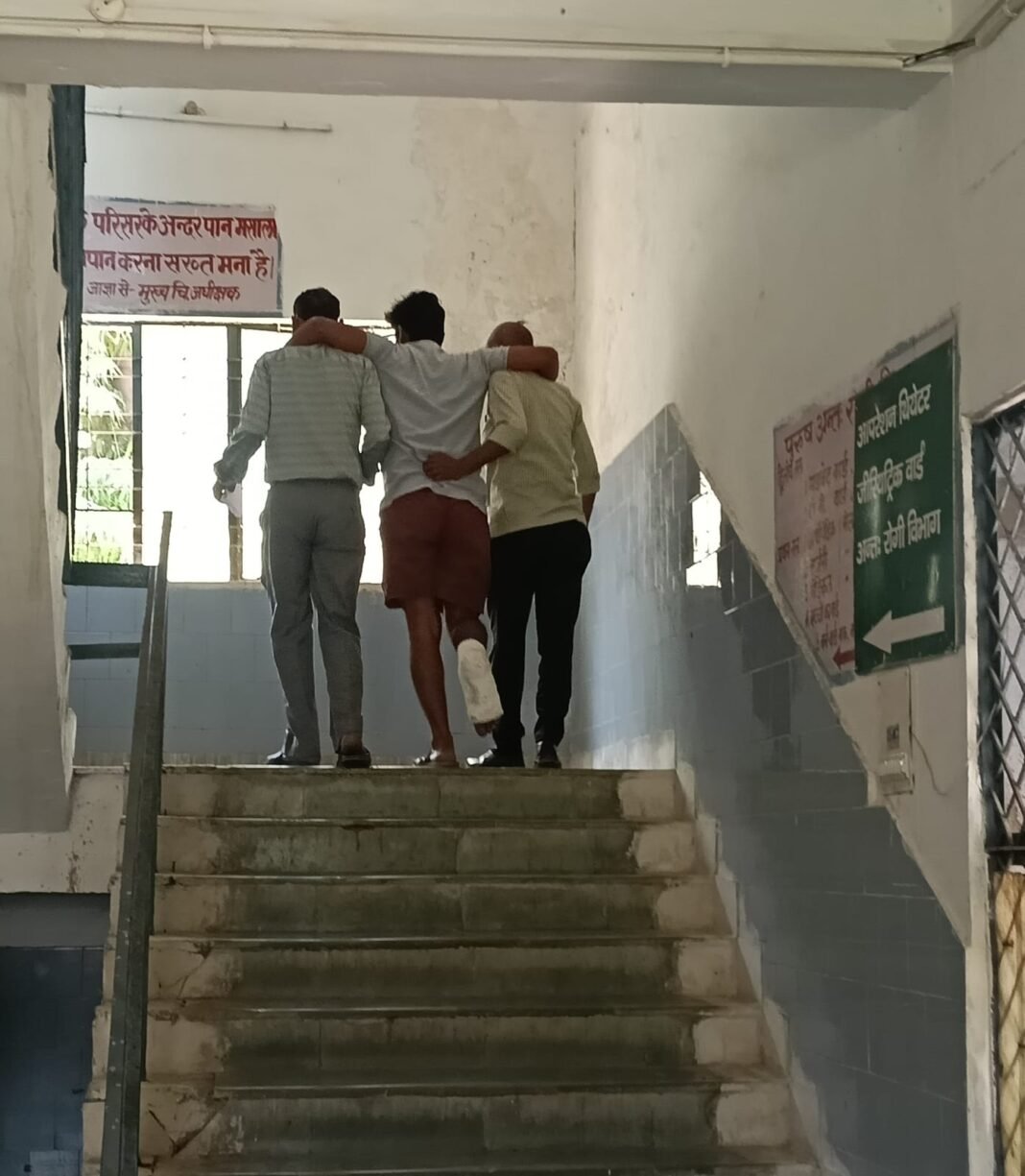अस्पताल में एक मरीज को व्हीलचेयर तक उपलब्ध नहीं हो सकी, जिसके चलते उसके परिजनों को मजबूरन मरीज को गोद में उठाकर दूसरी मंजिल पर बने वार्ड तक ले जाना पड़ा। यह दृश्य अस्पताल की व्यवस्थाओं पर गंभीर सवाल खड़े करता है।
