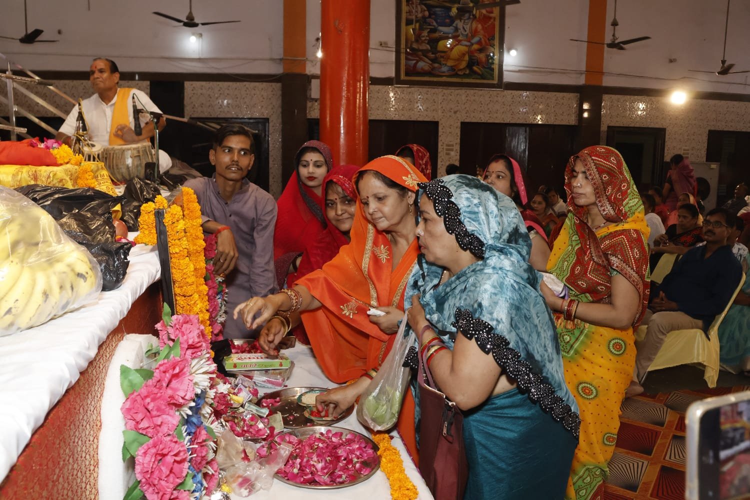 श्रीमती संध्या दीक्षित कुमारी आस्था शर्मा विजयलक्ष्मी शोभित स्मृति रजनी लौगवानी आलव्या महिलाओं ने लोक गीत विवाह गीत श्री राम जी की बारात अवध से मिथिला चली