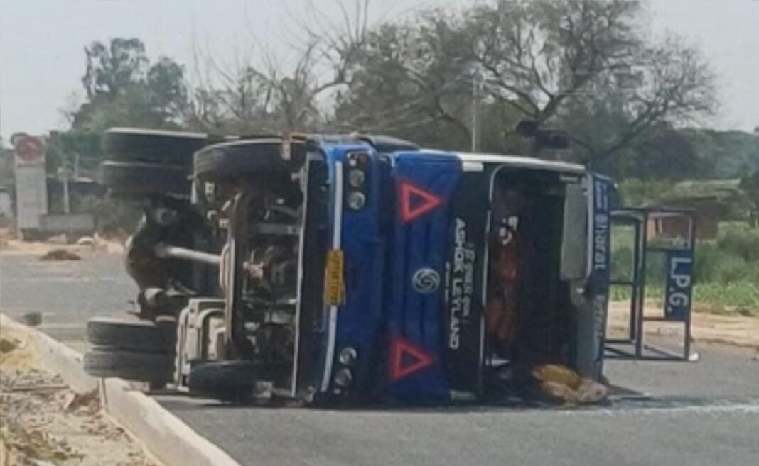 कासगंज: मथुरा-बरेली मार्ग पर सोमवार दोपहर एक बड़ा हादसा होते-होते टल गया। मोहनपुरा के पास एक एलपीजी टैंकर अनियंत्रित होकर पलट गया, जिसके बाद उसमें से गैस का रिसाव शुरू हो गया। गैस लीक होने की सूचना मिलते ही आसपास के क्षेत्र में दहशत का माहौल बन गया और लोगों में अफरा-तफरी मच गई।