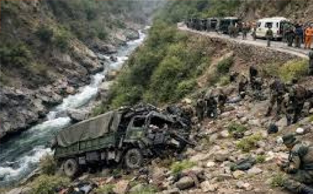जम्मू: जम्मू-कश्मीर (Jammu and Kashmir) के डोडा (Doda) जिले में गुरुवार को सैनिकों को ले जा रहा सेना का वाहन दुर्घटनाग्रस्त होकर गहरी खाई में गिर गया, जिसमें कम से कम दस भारतीय सेना के जवान शहीद हो गए और 11 घायल हो गए। यहां अधिकारियों ने बताया कि सेना का कैस्पर वाहन भदेरवाह-चंबा मार्ग पर खानीटॉप के पास फिसलन भरी सड़क के कारण खाई में गिर गया, जब एक दल एक अभियान के लिए जा रहा था। उन्होंने कहा, “वाहन लगभग 300 फीट गहरी खाई में गिर गया, जिसके परिणामस्वरूप दस सैनिकों की मौत हो गई और 11 घायल हो गए।”