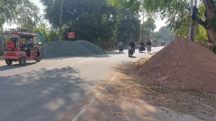 फर्रुखाबाद। नगर के नवदिया क्षेत्र में मुख्य सड़क पर दुकानदारों द्वारा किए गए अवैध कब्ज़े और सड़क के दोनों ओर बेतरतीब पड़ी मौरंग व गिट्टी आमजन के लिए गंभीर खतरा बन चुकी है। दिन-प्रतिदिन बढ़ते इस अतिक्रमण और निर्माण सामग्री के ढेर से आए दिन दुर्घटनाएँ हो रही हैं, लेकिन जिम्मेदार विभाग आंखें मूंदे बैठे हैं।