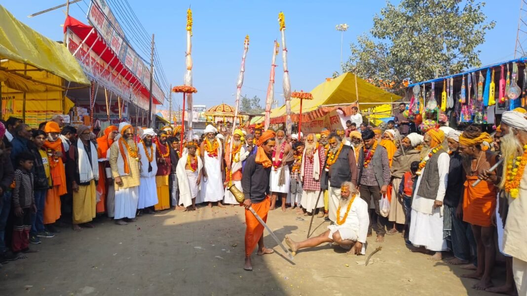510 जूना अखाड़ा के महंत सत्यगिरी महाराज के निर्देशन में निकाली गई शोभायात्रा विशेष आकर्षण का केंद्र रही। यह भव्य यात्रा सीढ़ी नंबर चार के पास से प्रारंभ होकर मेला परिसर का भ्रमण करती हुई प्रशासनिक पंडाल के पास पहुंची। यहां उपस्थित अधिकारियों व जिम्मेदारों ने संत समाज का स्वागत-अभिनंदन किया। घंटे-घड़ियाल और शंख-नाद की गूंज के बीच निकली इस यात्रा में साधु समाज के लोगों ने विभिन्न प्रकार के पारंपरिक व साहसिक करतबों का प्रदर्शन किया, जिसे देखने के लिए भारी संख्या में श्रद्धालु उमड़ पड़े।