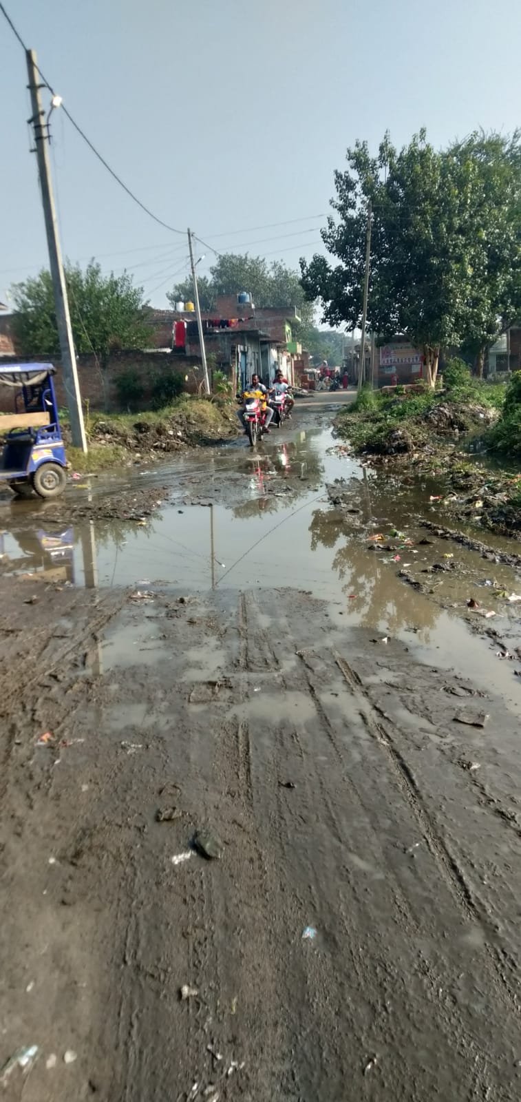 नगर पंचायत वार्ड 14 गांधीनगर में सड़कों पर जलभराव, जनता परेशान