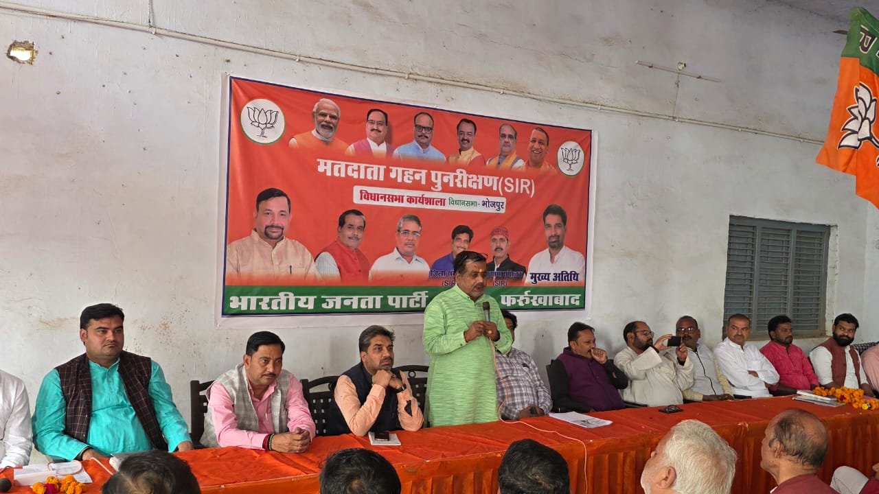जहानगंज (फर्रुखाबाद)। विधानसभा भोजपुर क्षेत्र के रामाधार कोल्ड स्टोरेज, जहानगंज में शनिवार को मतदाता गहन पुनरीक्षण कार्यशाला का भव्य आयोजन किया गया। कार्यक्रम में भाजपा के भोजपुर विधायक नागेंद्र सिंह राठौर मुख्य अतिथि के रूप में उपस्थित रहे, जिन्होंने कार्यकर्ताओं को आगामी विधानसभा चुनावों की तैयारी के मद्देनज़र संगठनात्मक मजबूती और मतदाता सूची के शुद्धीकरण पर जोर दिया।