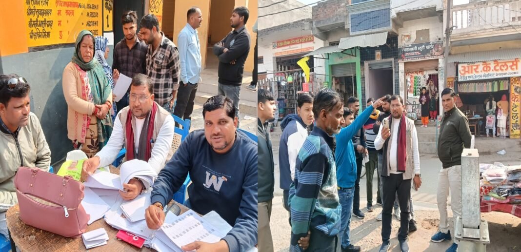 नवाबगंज: नगर के प्राथमिक विद्यालय केंद्र (primary school center) पर रविवार को उस समय अव्यवस्था देखने को मिली, जब मतदाता सूची पुनरीक्षण कार्य के दौरान एक बूथ की BLO मौके पर अनुपस्थित पाई गईं। नगर पंचायत चेयरमैन अनिल राजपूत और मंडल अध्यक्ष कमल भारद्वाज द्वारा किए गए औचक निरीक्षण में यह लापरवाही सामने आई, जिससे नए वोट बनवाने आए नागरिकों को निराश होकर लौटना पड़ा।