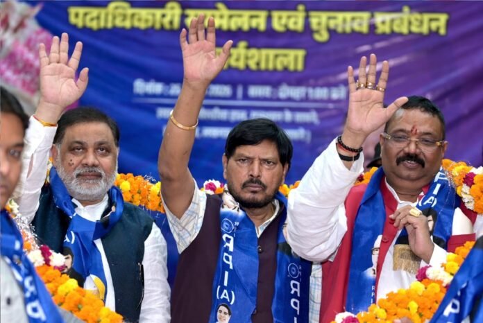 लखनऊ: रिपब्लिकन पार्टी ऑफ इंडिया (आ.) के राष्ट्रीय अध्यक्ष एवं केंद्रीय सामाजिक न्याय व अधिकारिता मंत्री डॉ. रामदास आठवले आज लखनऊ के एक दिवसीय प्रवास पर रहे। इस दौरान उन्होंने केसरबाग स्थित गाँधी प्रेक्षागृह में आयोजित ‘महिला कार्यकर्ता सम्मेलन’ एवं PWD स्थित विश्वेश्वरैया हॉल में आयोजित ‘पदाधिकारी सम्मेलन एवं चुनाव प्रबंधन कार्यशाला’ में मुख्य अतिथि के रूप में शिरकत की।