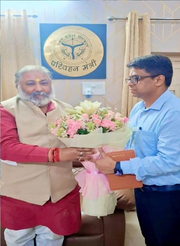 मुलाकात के दौरान परिवहन मंत्री दयाशंकर सिंह ने नवागत परिवहन आयुक्त को नई जिम्मेदारी के लिए शुभकामनाएं देते हुए विभागीय कार्यों को पारदर्शिता, जवाबदेही और जनहित को केंद्र में रखकर आगे बढ़ाने के निर्देश दिए। उन्होंने कहा कि प्रदेश में परिवहन सेवाओं को और अधिक सुदृढ़, सुरक्षित और सुगम बनाना सरकार की प्राथमिकता है, जिसके लिए अधिकारियों को समन्वय के साथ कार्य करना होगा।