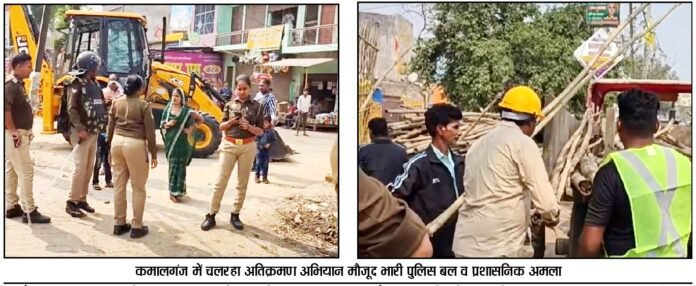 एक्शन में जिलाधिकारी आशुतोष कुमार द्विवेदी, कमालगंज तिराहे के पास अतिक्रमण पर चला बुल्डोजर