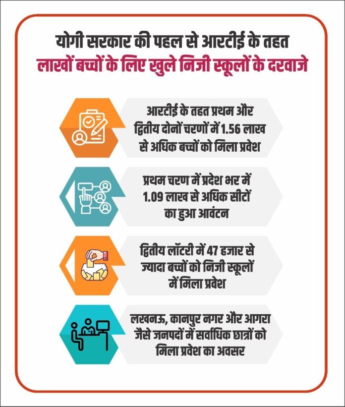 आरटीई अधिनियम के तहत निजी विद्यालयों में निर्धारित सीटों पर आर्थिक रूप से कमजोर वर्ग और वंचित वर्ग के बच्चों को प्रवेश दिया जाता है। योगी सरकार ने इस व्यवस्था को प्रभावी बनाने के लिए पूरी प्रक्रिया को ऑनलाइन और पारदर्शी बनाया है ताकि चयन प्रक्रिया में निष्पक्षता सुनिश्चित हो सके। मुख्यमंत्री योगी आदित्यनाथ का मानना है कि गुणवत्तापूर्ण शिक्षा समाज के हर वर्ग के बच्चों तक पहुंचनी चाहिए। इसी उद्देश्य के साथ प्रदेश सरकार यह सुनिश्चित कर रही है कि आर्थिक रूप से कमजोर परिवारों के बच्चे भी निजी विद्यालयों में पढ़कर अपने भविष्य को बेहतर बना सकें।