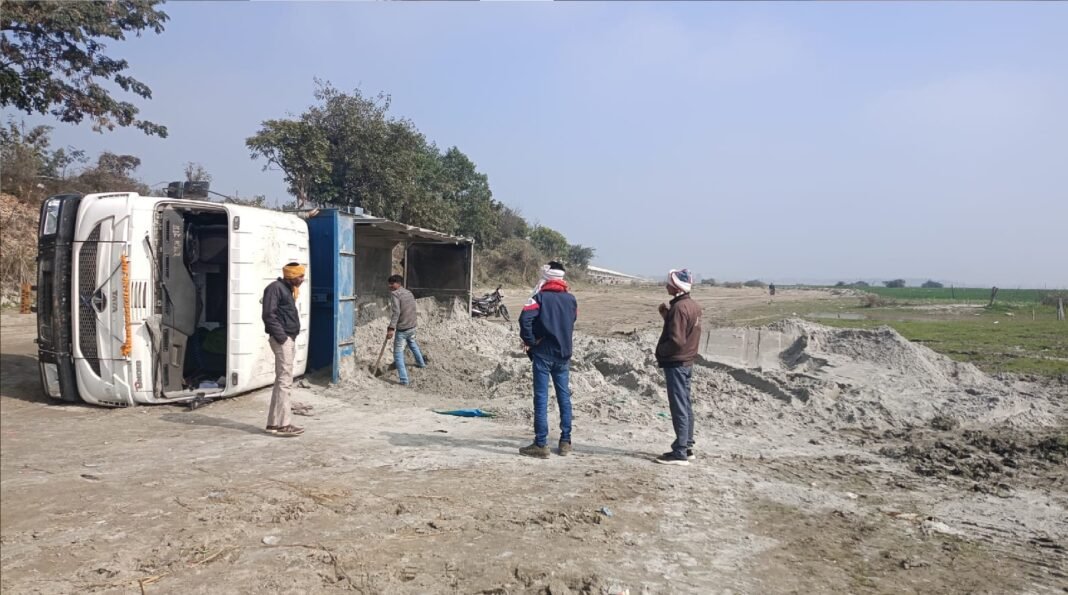 शमशाबाद (फर्रुखाबाद): गंगा कटरी क्षेत्र में जारी अवैध व ओवरलोड बालू खनन एक बार फिर हादसे का कारण बन गया। ढाई घाट शमशाबाद क्षेत्र में खनन के बाद बालू लेकर जा रहा एक ओवरलोड डंपर (Overloaded sand-laden dumper) अनियंत्रित होकर पलट गया। गनीमत रही कि इस घटना में चालक व परिचालक (driver and conductor) बाल-बाल बच गए, अन्यथा कोई बड़ा हादसा हो सकता था।