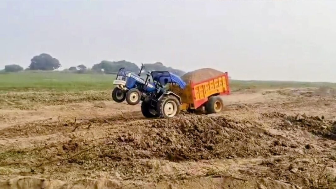 फतेहपुर: जिले में ओवरलोडिंग (Overloading) और अवैध खनन (illegal mining) पर रोक के सभी दावे खोखले साबित हो रहे हैं। किशनपुर कस्बे के संगोलीपुर मौरंग खदान में खनन माफिया खुलेआम नियमों की धज्जियां उड़ा रहे हैं। किसानों की जमीन पर जबरन रास्ता बनाकर खनन किए जाने से क्षेत्र में तनाव बढ़ गया है। किसानों ने आरोप लगाया है कि खदान संचालक उनकी निजी भूमि पर जबरन रास्ता काटकर भारी मशीनें और ट्रक चलवा रहे हैं। विरोध करने पर किसानों से अभद्रता की गई और दबाव बनाया गया। इससे नाराज किसान पिछले तीन दिनों से लगातार धरने पर बैठे हैं।