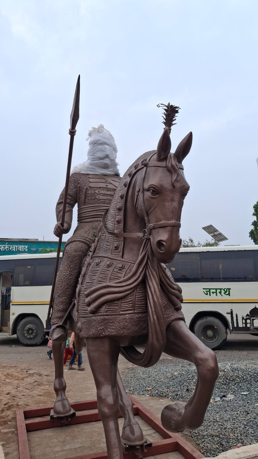 फर्रुखाबाद। शहर के रोडवेज बस स्टैंड पर महाराणा प्रताप की भव्य प्रतिमा स्थापना का कार्य शुक्रवार को शुरू हुआ। पहले से निर्धारित कार्यक्रम के अनुसार, प्रतिमा को डीसीएम वाहन पर लादकर बस स्टैंड लाया गया। वहां पहुंचने पर भारी भीड़ ने वीर शिरोमणि महाराणा प्रताप के जयकारों से माहौल गुंजा दिया। इसके बाद क्रेन की सहायता से मूर्ति को सावधानीपूर्वक उतारा गया।