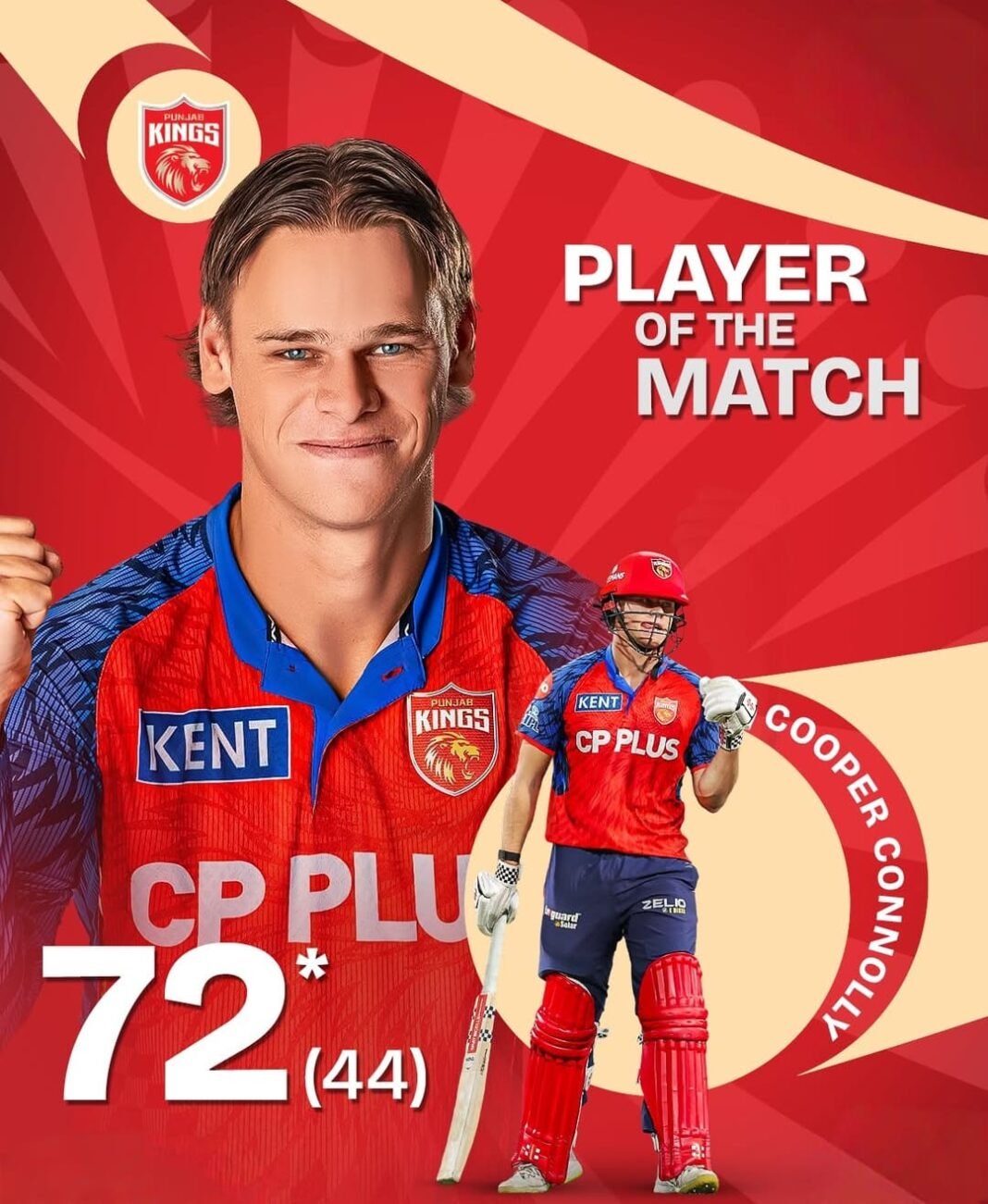 इसके बाद प्रभसिमरन सिंह और कूपर कोनोली ने पारी को संभाला और तेज़ी से रन बनाए। दोनों बल्लेबाज़ों ने मिलकर सातवें ओवर में 50 रन की साझेदारी पूरी की। प्रभसिमरन ने आक्रामक बल्लेबाज़ी करते हुए टीम का स्कोर तेजी से आगे बढ़ाया।