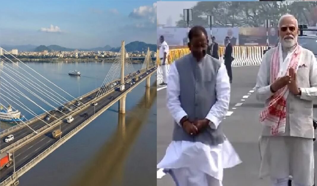 मोरान से मोदी गुवाहाटी के लिए रवाना हुए, जहां असम के मुख्यमंत्री हिमंता बिस्वा सरमा और केंद्रीय मंत्री सरबानंदा सोनोवाल ने उनका स्वागत किया।प्रधानमंत्री ने ब्रह्मपुत्र नदी पर गुवाहाटी और उत्तरी गुवाहाटी को जोड़ने वाले कुमार भास्कर वर्मा सेतु का उद्घाटन पुल पर चलकर और बटन दबाकर किया।