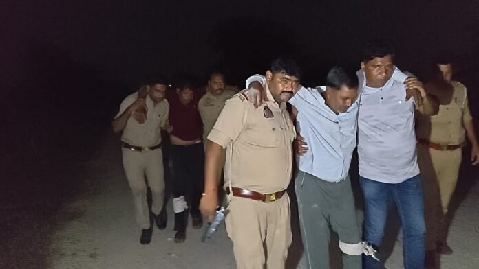 नवाबगंज, फर्रुखाबाद। थाना पुलिस टीम ने सोमवार को करनपुर-जसमई मार्ग पर सुमनलता डिग्री कॉलेज के पास हुई मुठभेड़ के दौरान तीन शातिर बदमाशों को गिरफ्तार करने में बड़ी सफलता हासिल की है। मुठभेड़ में दो बदमाशों के पैर में गोली लगने से वे घायल हो गए। पुलिस ने मौके से भारी मात्रा में असलहे और कारतूस बरामद किए हैं।