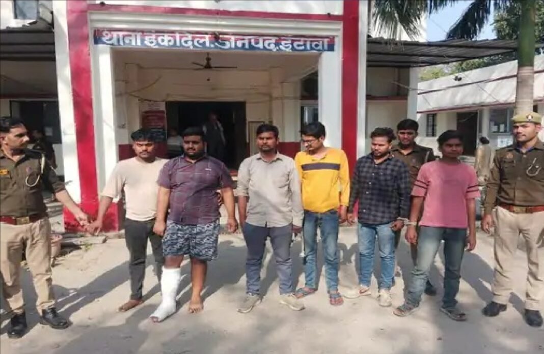 इटावा| हाईवे स्थित होटल राज पैलेस में पुलिस ने छापेमारी कर दो युवतियों सहित आठ लोगों को गिरफ्तार कर जेल भेज दिया। होटल मालिक कश्मीर सिंह समेत सात नामजद और एक अज्ञात व्यक्ति के खिलाफ अनैतिक व्यापार अधिनियम सहित विभिन्न धाराओं में मुकदमा दर्ज किया गया है। मौके से आपत्तिजनक सामग्री और एक डायरी भी बरामद की गई है। पुलिस पूरे मामले की गहन जांच में जुटी है। छापेमारी के दौरान होटल से कूदकर भागने की कोशिश में एक युवक के पैर में फ्रैक्चर हो गया।