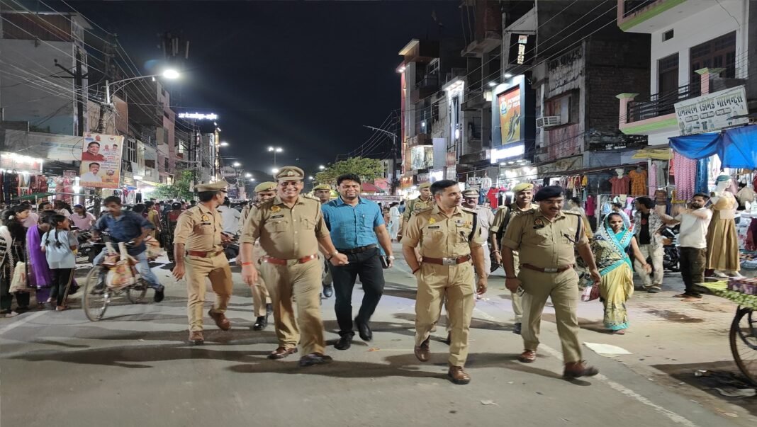 फर्रुखाबाद: आगामी त्योहारों को शांतिपूर्ण माहौल में संपन्न कराने के उद्देश्य से पुलिस अधीक्षक आरती सिंह के निर्देश पर शुक्रवार को पूरे शहर में कड़ी सुरक्षा व्यवस्था की गई। त्योहारों पर बढ़ती भीड़ और महिलाओं की सुरक्षा को ध्यान में रखते हुए पुलिस फोर्स की विशेष तैनाती की गई। शहर के भीड़भाड़ वाले बाजारों, चौक, लोहाई रोड, लालगेट, नेहरू रोड सहित अन्य संवेदनशील स्थानों पर पुलिस कर्मी पूरी मुस्तैदी (alert) के साथ तैनात रहे।