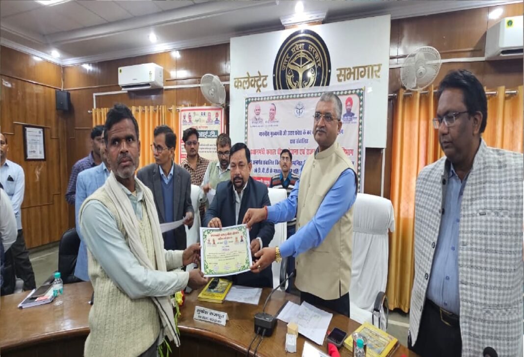 फर्रुखाबाद: कलेक्ट्रेट सभागार में जिलाधिकारी आशुतोष कुमार द्विवेदी की अध्यक्षता में प्रधानमंत्री फसल बीमा योजना एवं आपदा राहत वितरण कार्यक्रम का आयोजन किया गया। कार्यक्रम में जनपद के विभिन्न विकास खंडों से आए प्रगतिशील किसानों ने उत्साहपूर्वक भाग लिया। लखनऊ में आयोजित राज्य स्तरीय कार्यक्रम में योगी आदित्यनाथ द्वारा प्रधानमंत्री फसल बीमा योजना एवं आपदा विभाग के अंतर्गत लाभार्थी किसानों को ‘एक क्लिक डीबीटी’ के माध्यम से क्षतिपूर्ति राशि हस्तांतरित की गई, जिसका सजीव प्रसारण कलेक्ट्रेट सभागार में किया गया।