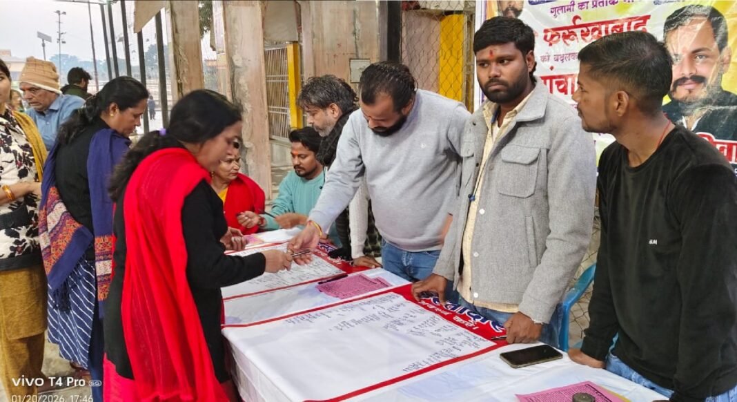फर्रुखाबाद: मंगलवार को गुरुगांव देवी मंदिर परिसर (Gurugram Devi Temple Complex) में गुलामी के प्रतीक माने जा रहे जनपद के नाम फर्रुखाबाद (Farrukhabad) को बदलने की मांग को लेकर हस्ताक्षर अभियान का द्वितीय दिवस शांतिपूर्ण व उत्साहपूर्ण माहौल में संपन्न हुआ। इस अभियान में बड़ी संख्या में आमजन ने भाग लेकर अपनी भावनाओं को व्यक्त किया और नाम परिवर्तन के समर्थन में हस्ताक्षर किए।