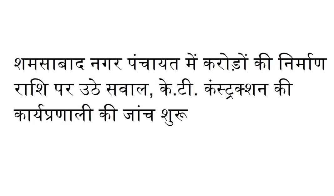 शमसाबाद नगर पंचायत में करोड़ों की निर्माण राशि पर उठे सवाल, के.टी. कंस्ट्रक्शन की कार्यप्रणाली की जांच शुरू
