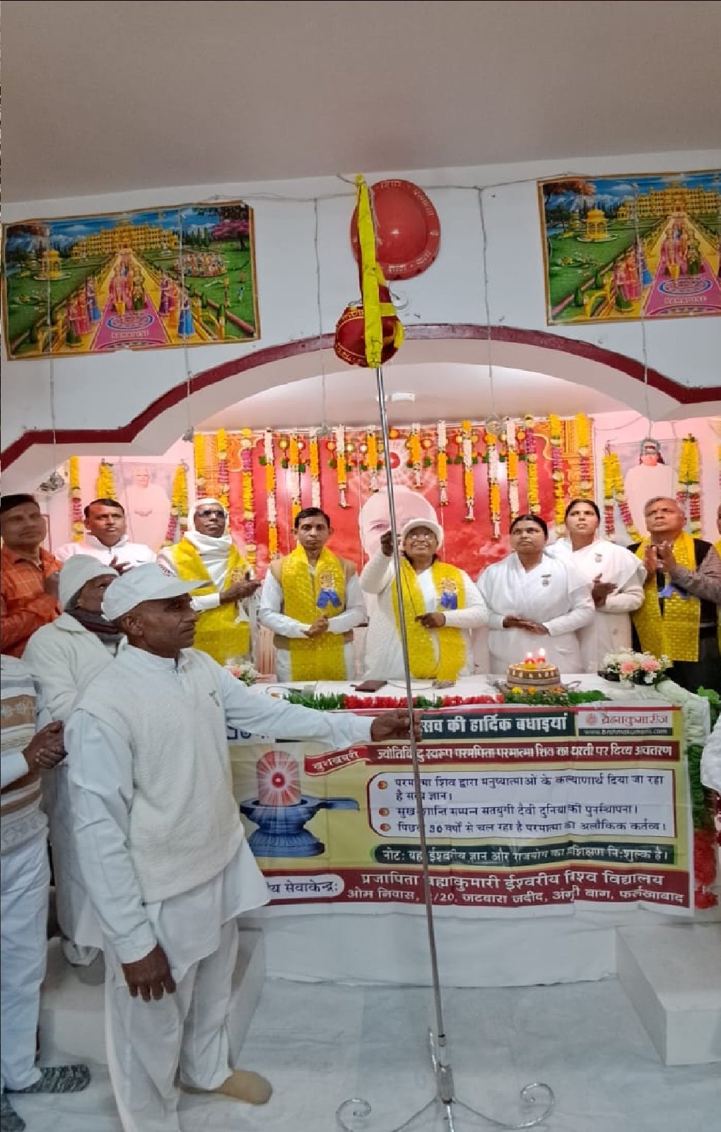 मुख्य अतिथि के रूप में पधारे मनोज कुमार दीक्षित ने कहा कि हम लोगों को बुराइयों से दूर रहना चाहिए। बीके बहनें समाज को अच्छे मार्ग पर लाने का कम कर रहीं है। इस मौके पर केंद्र संचालिका बी के शोभा ने शिव बाबा का माल्यार्पण कर केक काटा व शिव ध्वजारोहण किया।
