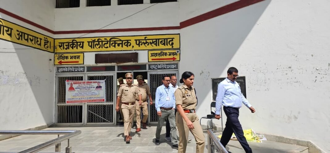 फर्रुखाबाद। उत्तर प्रदेश पुलिस भर्ती एवं प्रोन्नति बोर्ड द्वारा आयोजित उप निरीक्षक नागरिक पुलिस एवं समकक्ष पदों की सीधी भर्ती लिखित परीक्षा को शांतिपूर्ण और निष्पक्ष ढंग से संपन्न कराने के लिए जिला प्रशासन पूरी तरह सतर्क नजर आया। इसी क्रम में जिलाधिकारी आशुतोष कुमार द्विवेदी ने पुलिस अधीक्षक आरती सिंह के साथ जनपद में बनाए गए विभिन्न परीक्षा केंद्रों का निरीक्षण कर व्यवस्थाओं का जायजा लिया और अधिकारियों को आवश्यक निर्देश दिए।